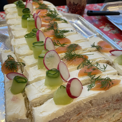 Leipäkatastrofista huolimatta myyjäisviikonloppu oli ihana! Siis oikeasti ihana. Hallilla vallitsi todellinen tekemisen meininki ja talkoohommiin innostui spontaanisti uusiakin vanhempia ja jokaiseen hommaan löydettiin luontevasti tekijät. Oli kivaa, kun nuorisoryhmäläiset ja muutkin lapset olivat auttamassa. Oli aikaa jutella, vitsailla sekä tutustua ja taisi siellä muutama uusi ystävyyskin syntyä. Me-henkeä! parhaimmillaan. Jo perjantaina alkanut lumimyräkkä sopi tunnelmaan täydellisesti. Itse myyjäispäivänä satoi yhä lunta, mutta kävijöitä oli mukavasti, tunnelma oli leppoinen ja kauppakin kävi. Tuoreitten pipareiden ja riisipuuron tuoksu, lasten lauluesitys sekä joulupukin vierailu saivat varmasti ihan jokaisen joulutunnelmaan. Myyntituotteita oli tarjolla moneen makuun ja kokoon. Herkkuja Domino-kekseistä Turunsinappiin. Suomi-tavaroita Marimekosta Muumeihin ja ihan oikeita irtokarkkeja. Juomapöydässä oli omenaporetta ja Jaffaa, niitä ihan aitoja ja oikeita. Lapsille oli ongintaa, askartelua sekä piparinpaistoa. Arpajaisissa oli palkintoina kaikenlaista ja monenmoista. Ruokapöydät notkuivat herkkuja kuten lohikiusausta, hernekeittoa, lihapiirakoita, voileipäkakkua sekä riisipiirakoita. Niitä nauttiessa tai lämmin glögikuppi kädessä oli mukavaa tavata tuttuja ja rupatella suomeksi.