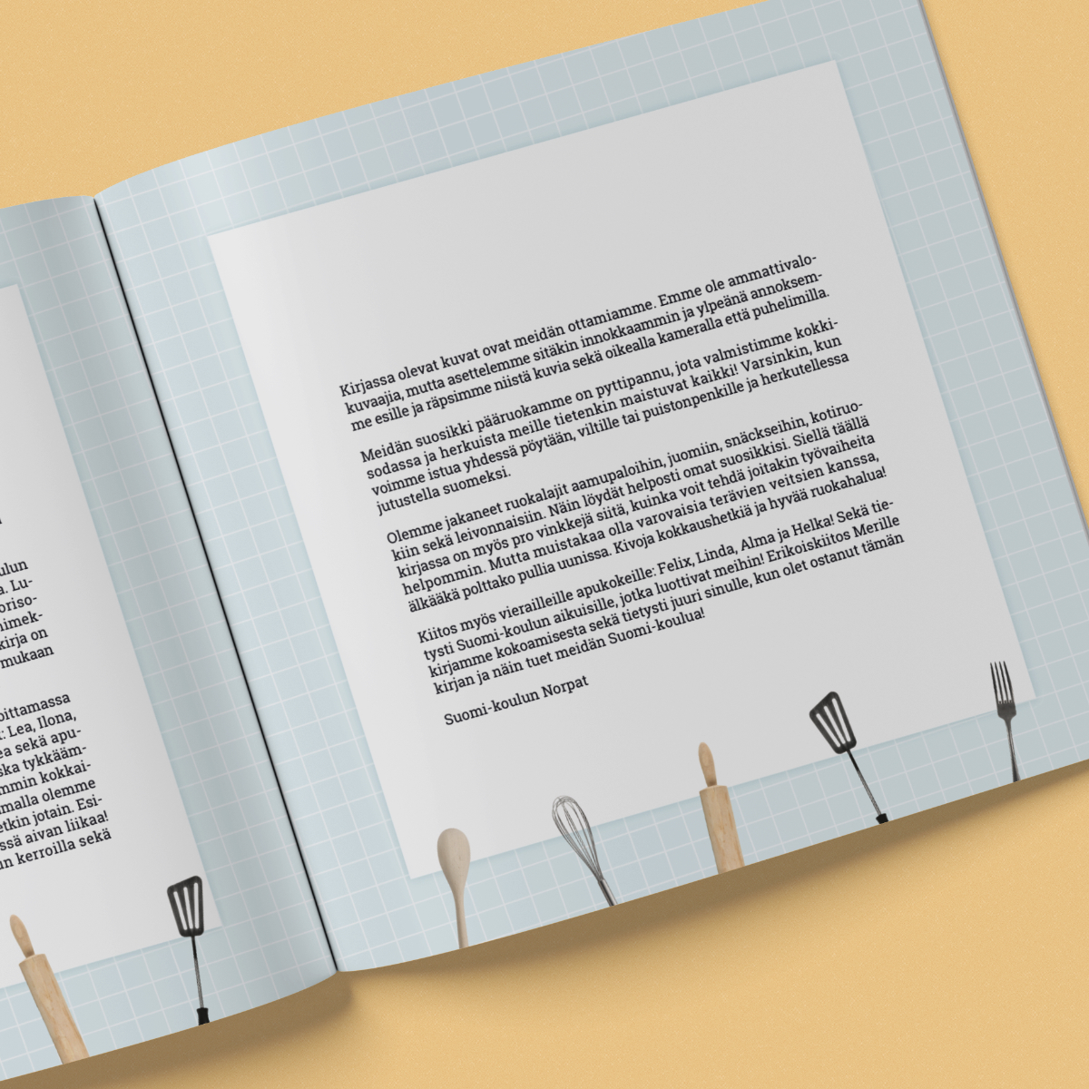 Tämä elokuun kesäleiri olikin loppurutistus meidän koko kokkikirja-projektille, jota olemme tämän koko lukuvuoden aikana työstäneet. Kokkasimme valitsemiamme suomalaisia aterioita, valokuvasimme ne ja kirjoitimme reseptit ylös kirjaa varten. Kokkikirja on nyt valmistunut ja ostettavissa joulubasaarilla 1.12.2024! Tulehan siis käymään meidän myyntipisteellämme ja tutustu hienoon, suomalaiseen, nuorten itse tekemään kokkikirjaan!