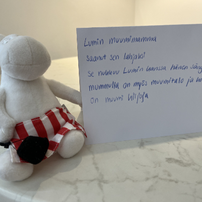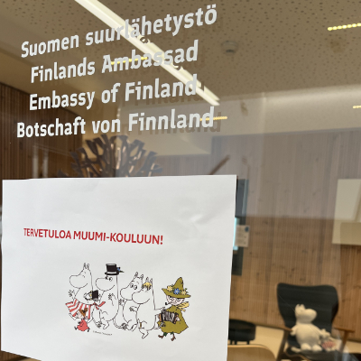 Me Suomi-koululaiset saimme kutsun Wienin Suomen suurlähetystöön viettämään Muumien 80-vuotisjuhla-päivää. Paikalle saapuikin suuri joukko Suomi-koululaisia, sekä iso kasa Muumi-pehmoleluja, Niiskuneitejä, Hattivatteja, Haisuli, Mörkö, Pikku Myy ja Merihevonenkin! Myös Suomen Suurlähettiläs Nina Vaskunlahti oli paikalla tervehtimässä reippaita Suomi-koululaisia.