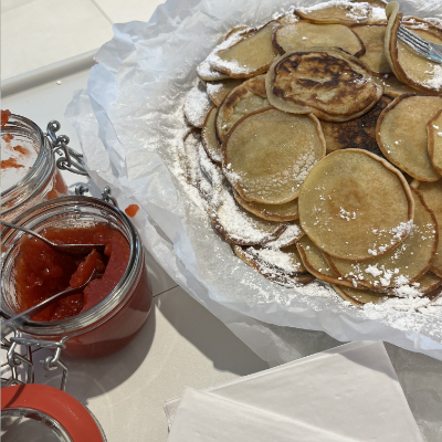 Tarjoilujen lomassa katselimme yhdessä Muumimaailman seikkailujen jakson nimeltä „Kuka lohduttaisi Nyytiä?”. Mahat täynnä lettuja ja hilloa sekä käsivarret täynnä Muumi aiheisia tatskoja lähdimme erittäin tyytyväisinä kotiin. Kiitämme suurlähetystöä tästä ainutlaatuisesta kutsusta; oli suuri ilo viettää kanssanne Muumien 80-vuotisjuhlaa!